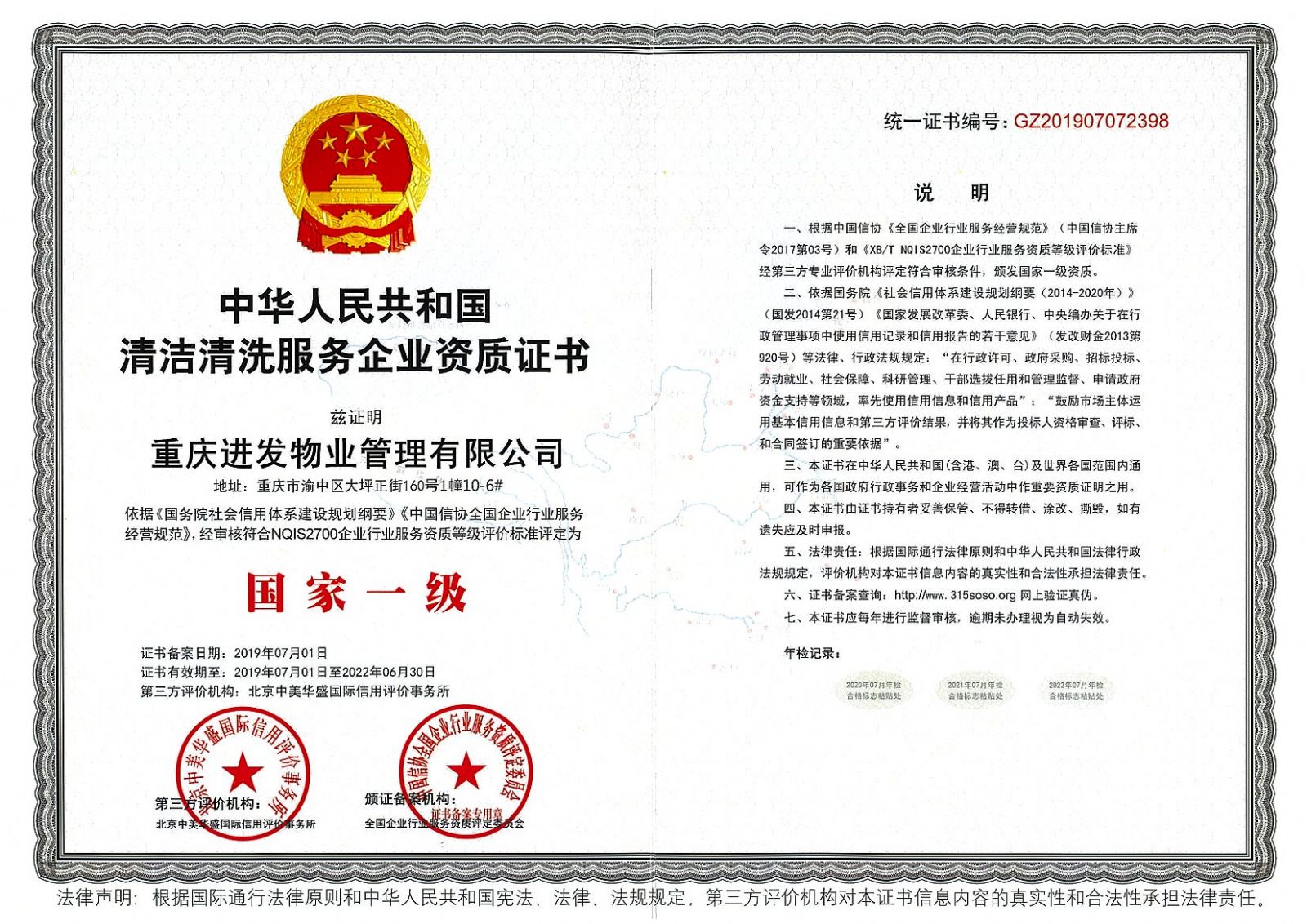 ? ? 公司多年來,為打造潔凈美麗的人居生活環境,專注、專心、專業不懈努力著?,F已成立了三家分公司,職工上千余人,并擁有了一支技術力量過硬、管理經驗成熟的精英團隊。在業務規模方面,物業管理服務規模達到150萬平方米,城市環境衛生管理服務規模達到600萬平方米;在技術支持方面,已取得多項技術專利、執業資質與榮譽稱號,并成為重慶市物業協會會員單位、重慶市環境衛生協會理事單位;在設備方面,自購了60余臺多種功能的特種設備車輛用于城市道路環境衛生管理服務,現已發展成為一家具有資金雄厚、技術先進、設備齊全、環境衛生管理服務專業的民營企業。